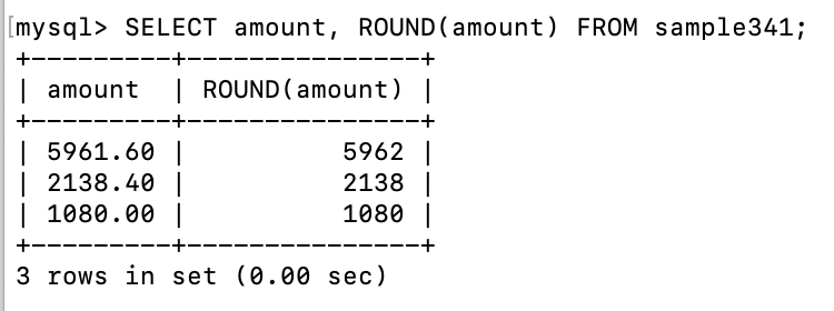 SELECT amount, ROUND(amount) FROM sample341;